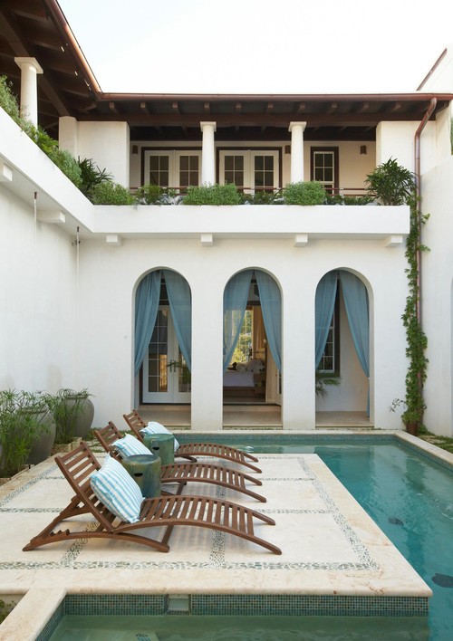 10 Gorgeous Courtyards From Mod to Moroccan - Some have pools or fountains; some are awash only with greenery. These courtyards run the gamut of styles but have alluring looks in common. Some of my favorites: